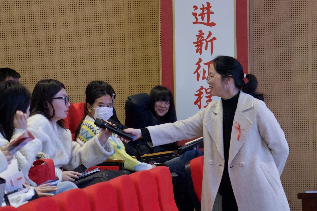 讲座注重情感引导与观念更新,通过互动讨论与故事分享着力化解公众对艾滋病的过度恐惧,推动建立理性、包容的社会认知,从而逐步消除对感染者的误解与歧视,共同营造关怀、平等、健康的支持性环境。从讲座上专注的眼神,到问答环节里踊跃的举手,同学们把对防艾知识的好奇,变成了实实在在的认知积累——答对题目时的笑脸,藏着的是对自我保护的更清晰认知。活动里,“知艾、防艾、不恐艾”不再是遥远的口号,而是融入交流与互动里的真切意识,让青春的健康防线,在每一次参与中变得更牢固。
